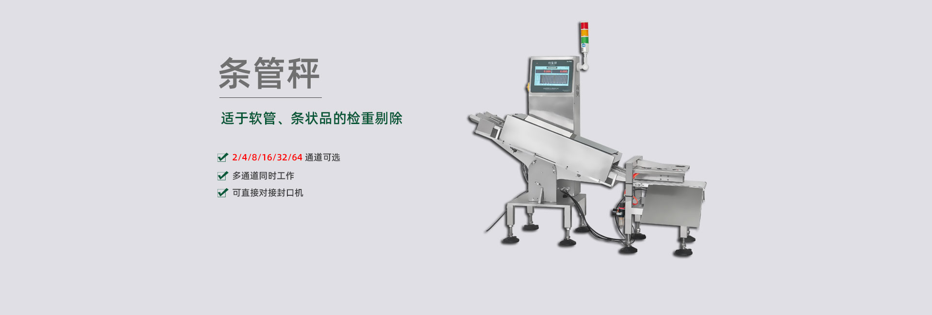 擁有各種剔除方案的專利,包括多列稱重結構的剔除裝置,可杜絕不合格品誤通過,準確剔除各種高速、超薄、片狀、易碎,軟包、空包等物品,包括多列高速產(chǎn)品。